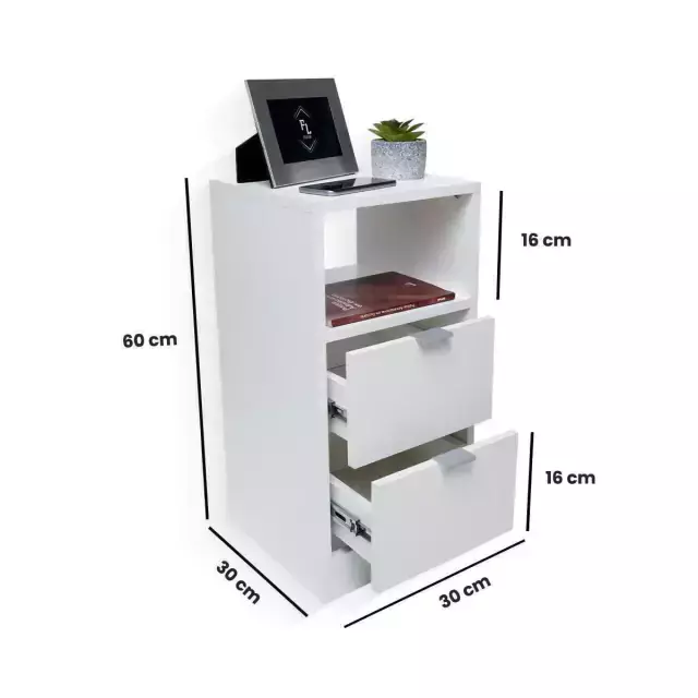 Mesa de Cabeceira FL Decor 60x30x30cm Branca – 2 Gavetas | MDF | Enviada Montada