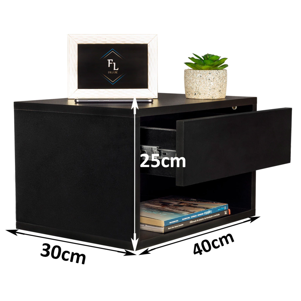 -Enviamos Montado. -Contém buchas e parafusos -Suspensa na parede para economizar espaço. -Construída com materiais duráveis e de alta qualidade. -Prateleira espaçosa para itens essenciais de cabeceira. -Design moderno e minimalista que se adapta a qualquer decoração. -Gaveta com espaço de armazenamento para manter seu quarto organizado.