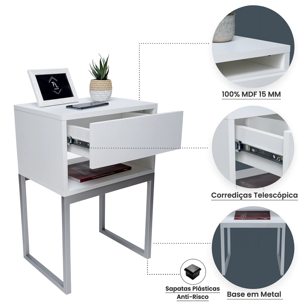 Essa mesa de cabeceira une design moderno, estrutura reforçada e funcionalidade.