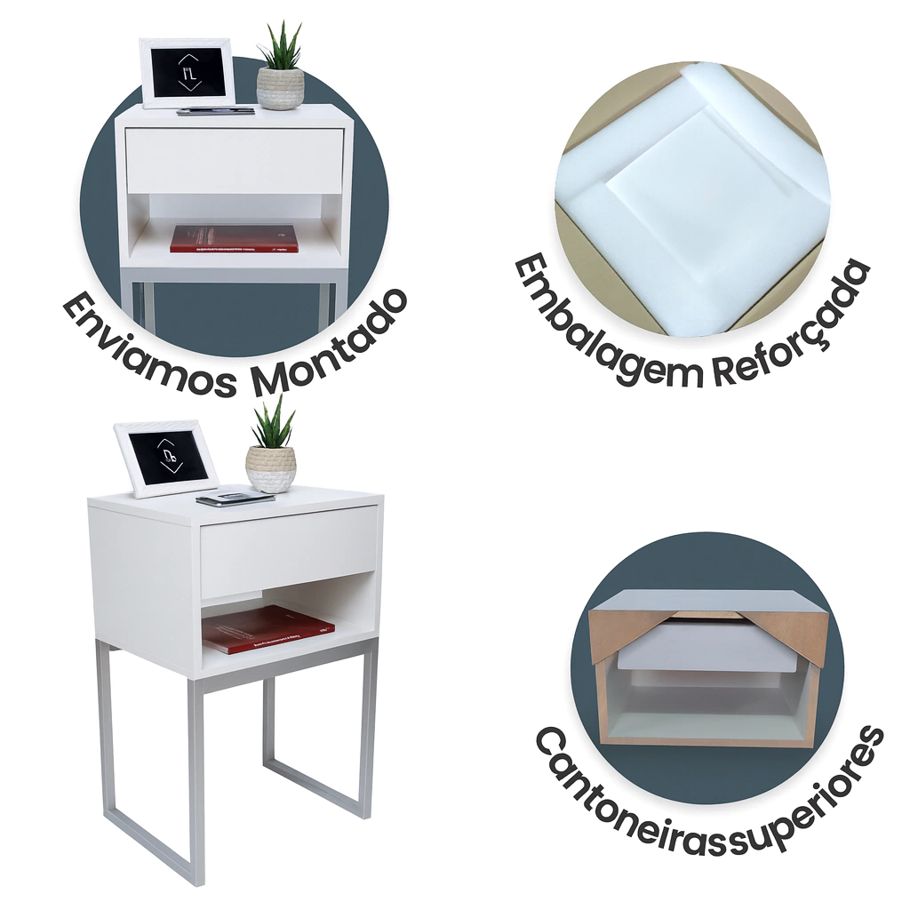 MESA DE CABECEIRA BRANCA 40CM – GAVETA + NICHO – ENVIADA MONTADA!