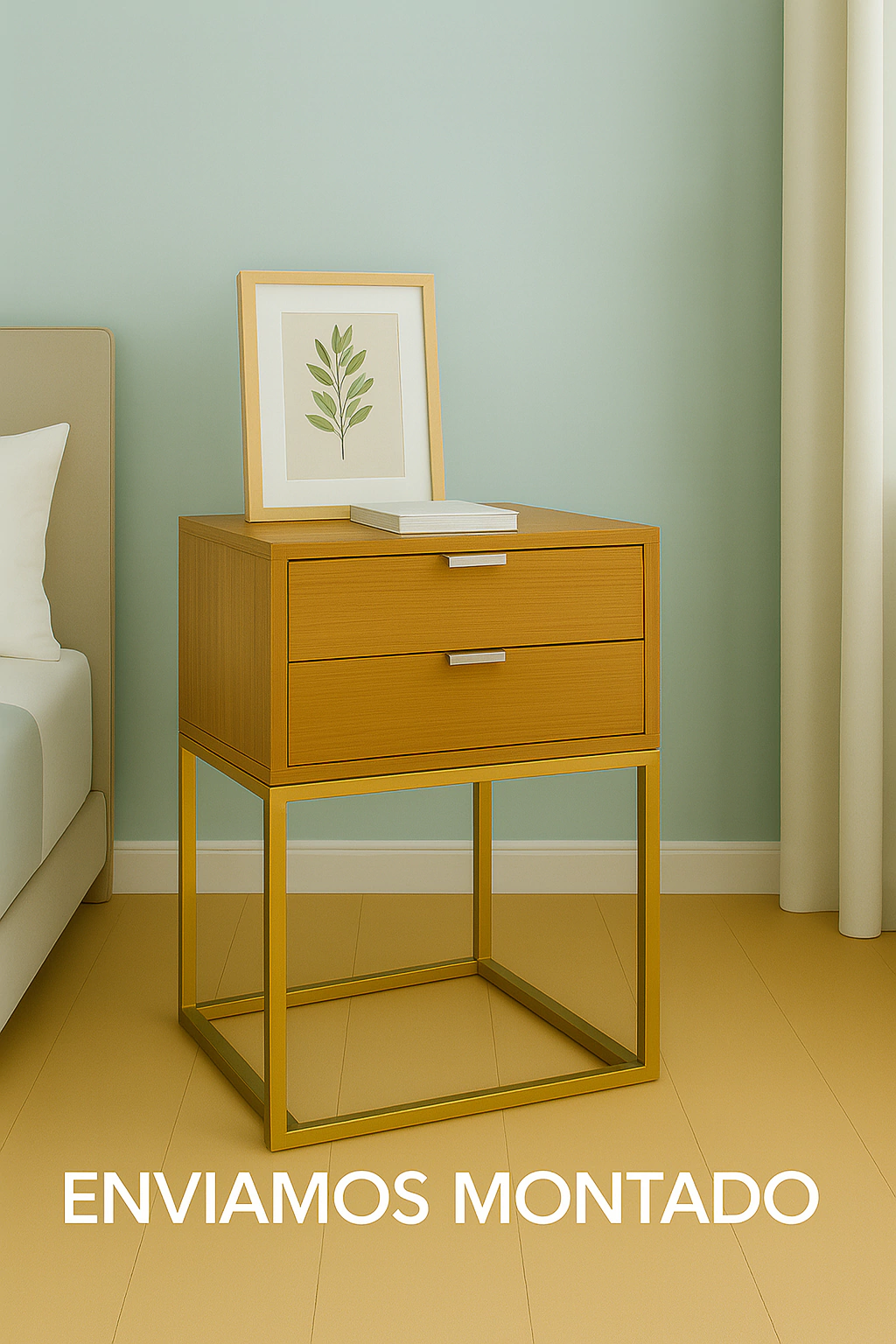 Produzida em MDF de alta qualidade com acabamento totalmente amadeirado, essa peça proporciona um visual natural, sofisticado e aconchegante. O grande diferencial está na base metálica com design industrial na cor dourada, que adiciona um toque de requinte e sofisticação ao ambiente, além de garantir estabilidade e durabilidade.