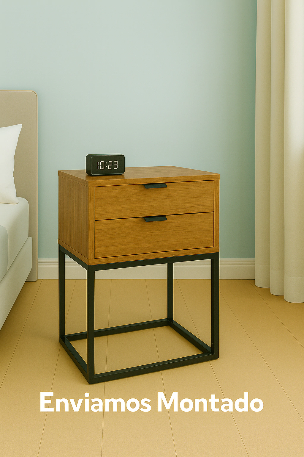Com duas gavetas espaçosas, é possível armazenar livros, documentos, eletrônicos e objetos pessoais com praticidade, mantendo tudo ao alcance da cama de forma organizada.