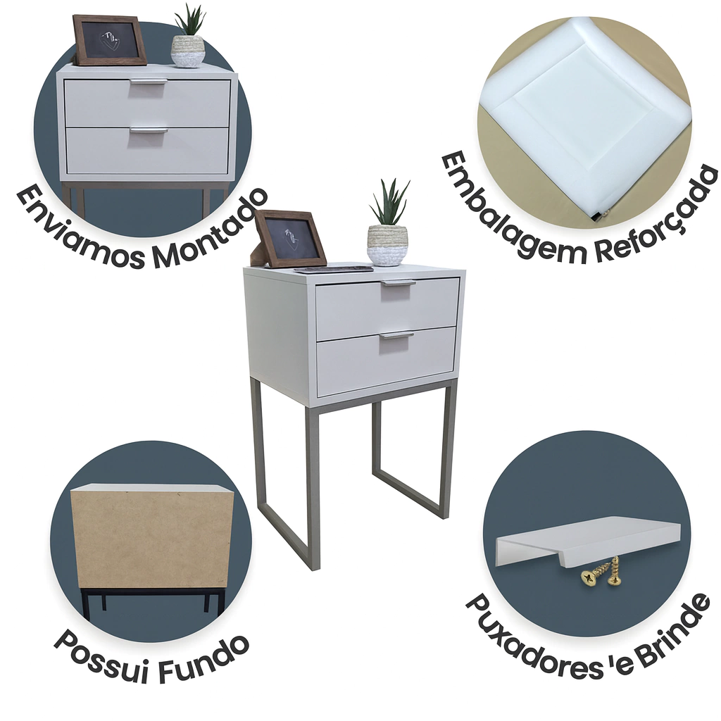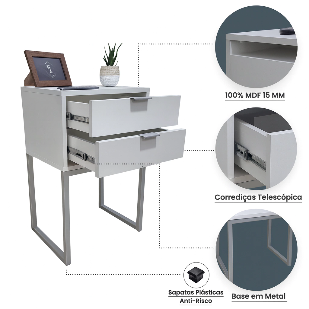 2 gavetas espaçosas: perfeitas para guardar objetos pessoais, acessórios e documentos.