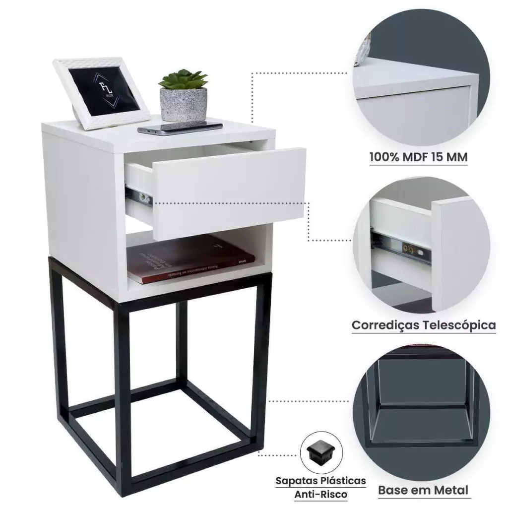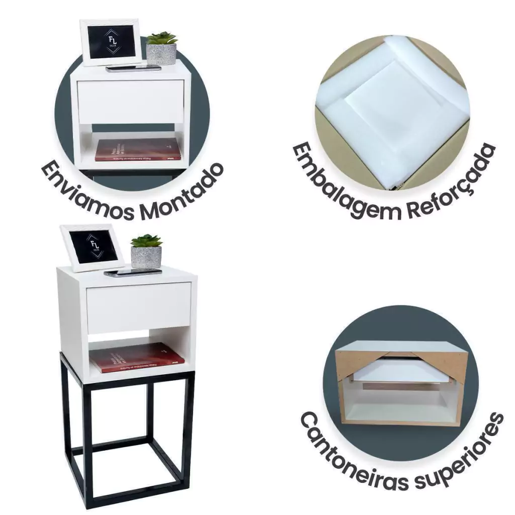 -Enviamos Montado. -Base Feita em Metalon. -Resistente Suportanto até 30kg. -Construída com materiais duráveis e de alta qualidade. -Design moderno e minimalista que se adapta a qualquer decoração. -Gaveta com espaço de armazenamento para manter seu quarto organizado.