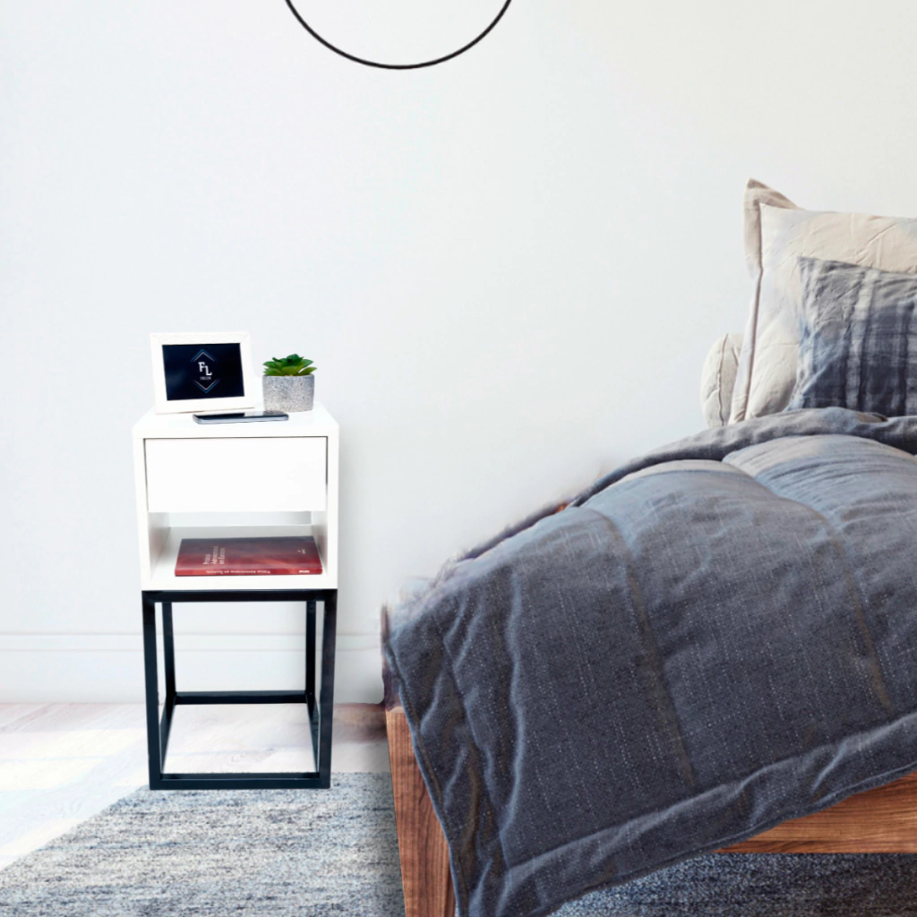 A mesa de cabeceira é uma peça elegante e funcional, perfeita para complementar a decoração do seu quarto. Ela é ideal para espaços compactos, proporcionando um local conveniente para armazenar itens essenciais ao alcance da sua cama.