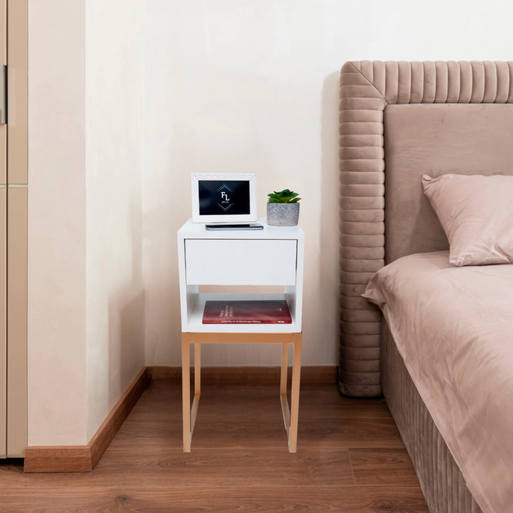 A mesa de cabeceira é uma peça elegante e funcional, perfeita para complementar a decoração do seu quarto. Ela é ideal para espaços compactos, proporcionando um local conveniente para armazenar itens essenciais ao alcance da sua cama.