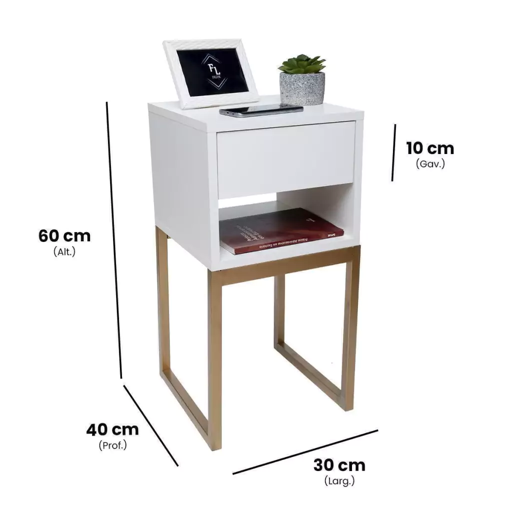 -Enviamos Montado. -Base Feita em Metalon. -Resistente Suportanto até 30kg. -Construída com materiais duráveis e de alta qualidade. -Design moderno e minimalista que se adapta a qualquer decoração. -Gaveta com espaço de armazenamento para manter seu quarto organizado.