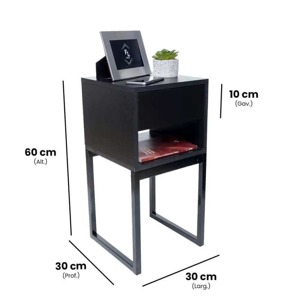 -Enviamos Montado. -Base Feita em Metalon. -Resistente Suportanto até 30kg. -Construída com materiais duráveis e de alta qualidade. -Design moderno e minimalista que se adapta a qualquer decoração. -Gaveta com espaço de armazenamento para manter seu quarto organizado.