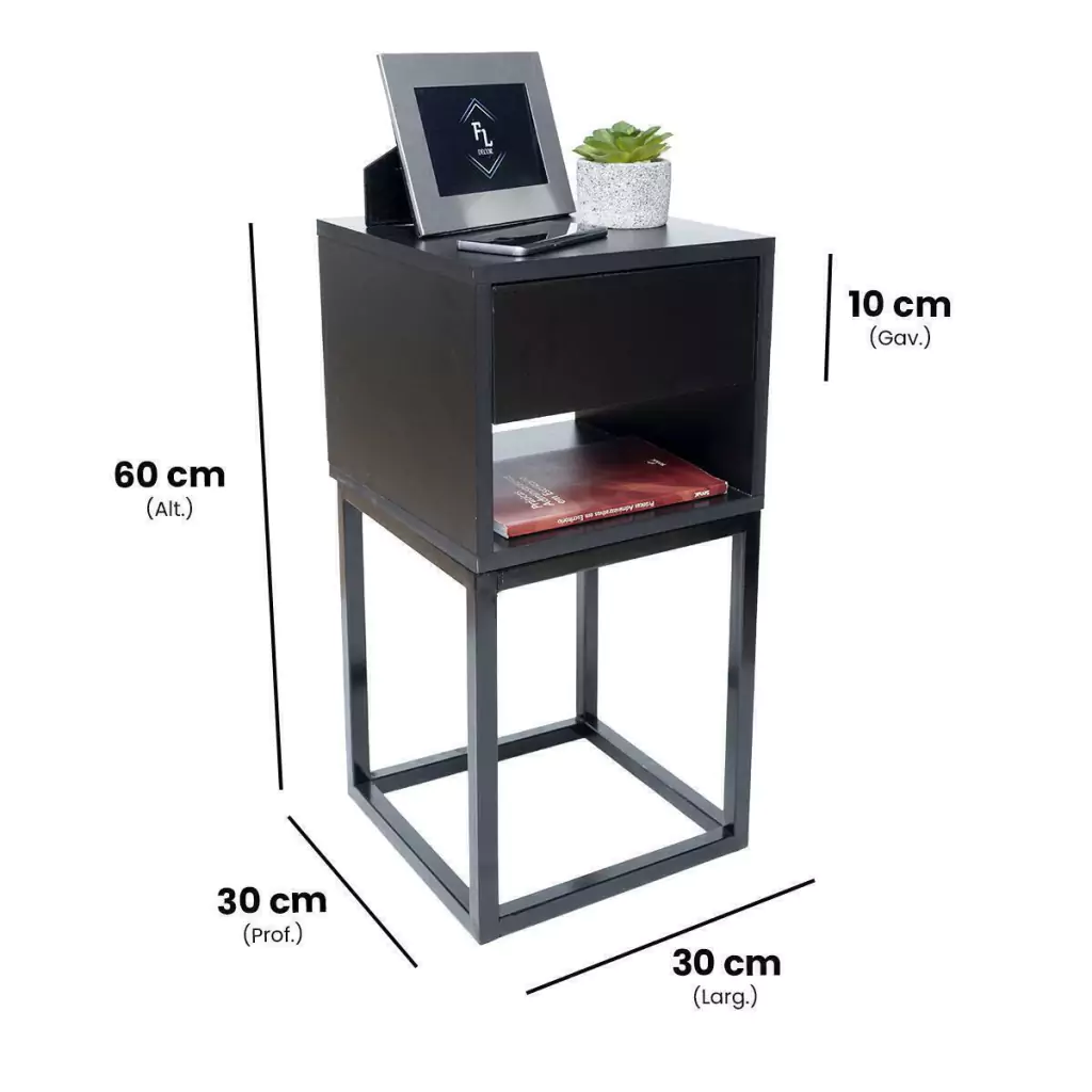 -Enviamos Montado. -Base Feita em Metalon. -Resistente Suportanto até 30kg. -Construída com materiais duráveis e de alta qualidade. -Design moderno e minimalista que se adapta a qualquer decoração. -Gaveta com espaço de armazenamento para manter seu quarto organizado.