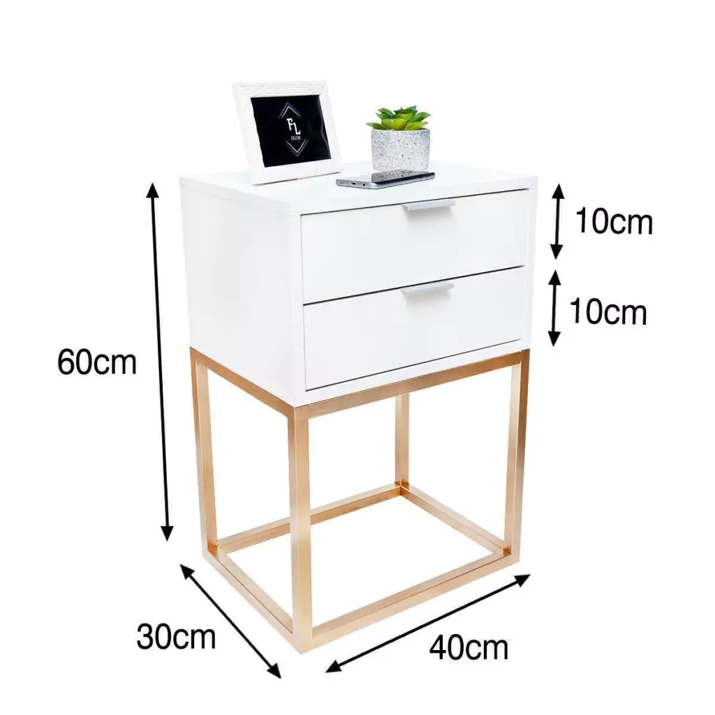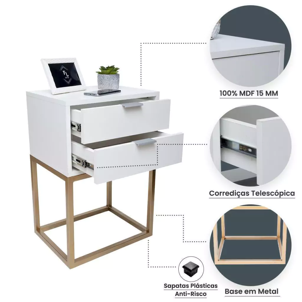 Esta mesa de cabeceira possui gavetas espaçosas, oferecendo amplo espaço de armazenamento para guardar livros, dispositivos eletrônicos, documentos e outros objetos pessoais. As gavetas deslizam suavemente, proporcionando fácil acesso aos seus pertences.