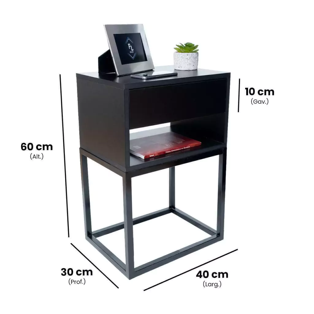 A mesa de cabeceira é uma peça elegante e funcional, perfeita para complementar a decoração do seu quarto. Ela é ideal para espaços compactos, proporcionando um local conveniente para armazenar itens essenciais ao alcance da sua cama.