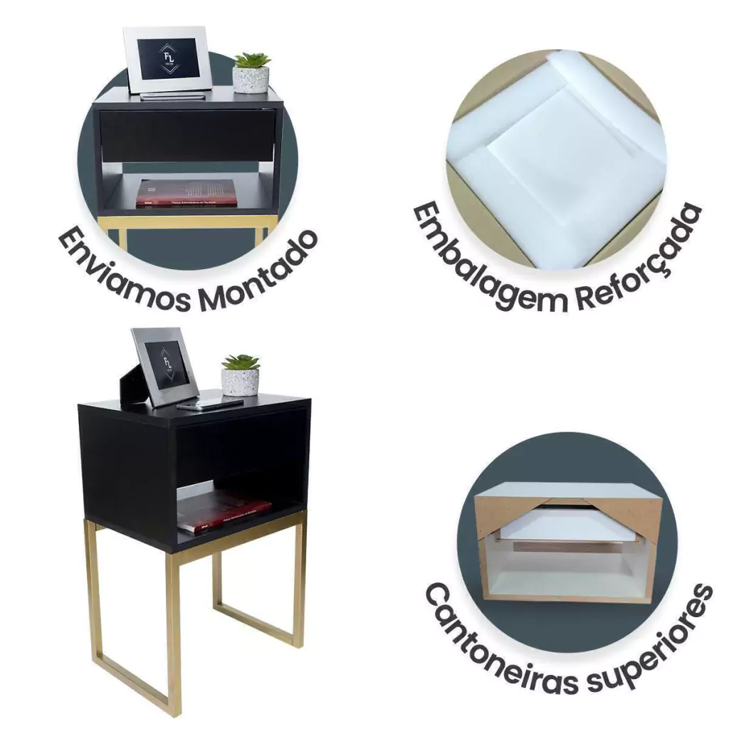 R: Trabalhamos com mesas de cabeceira nas cores branco, preto e off white.