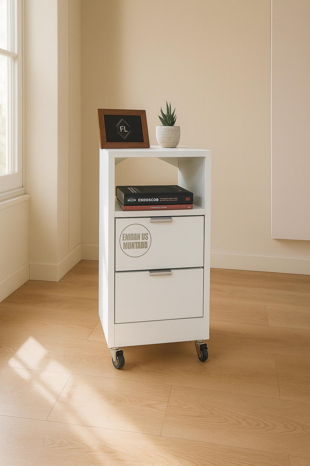 Mesa de Cabeceira Branca FL Decor 30cm com Gaveta, Nicho e Rodinhas | Enviada Montada