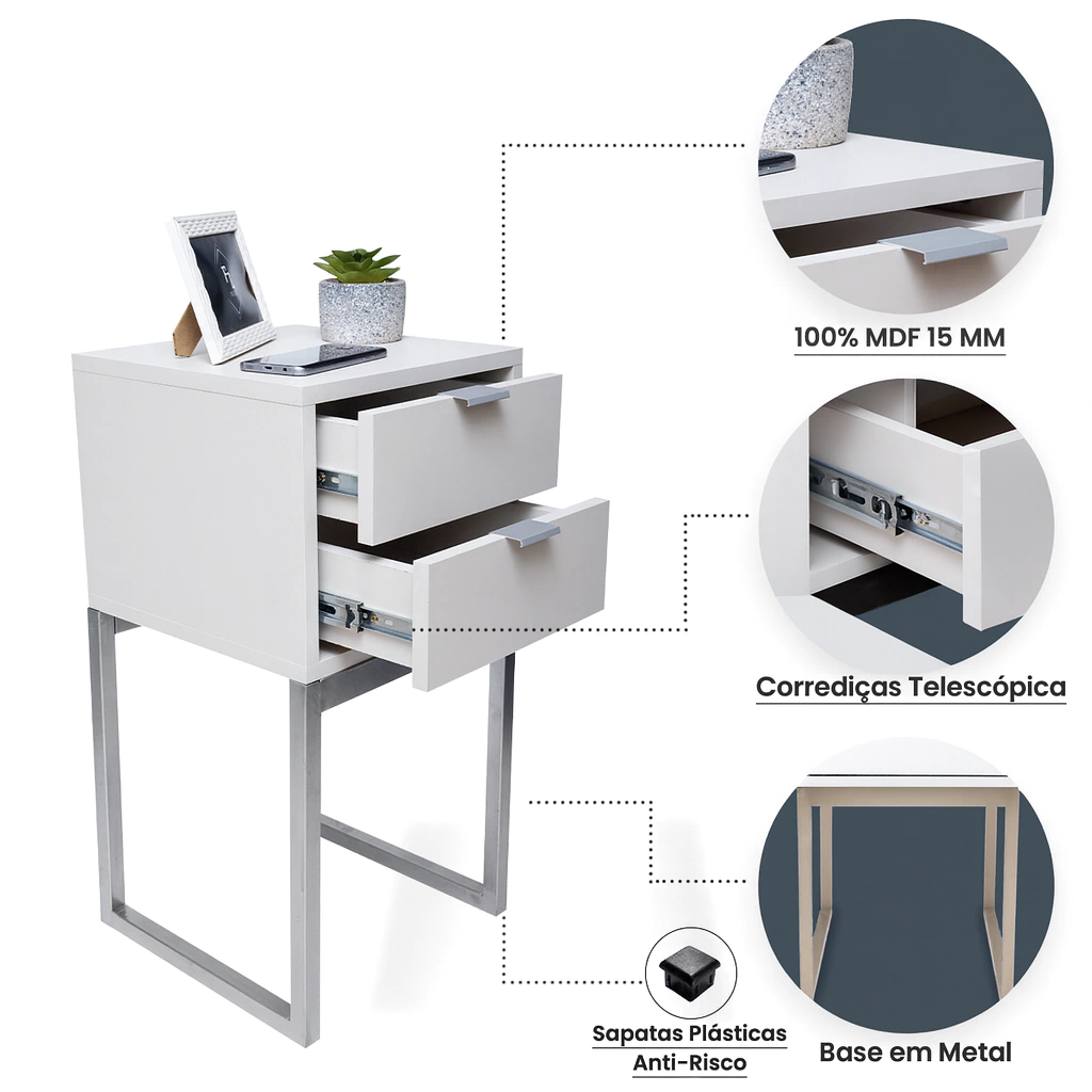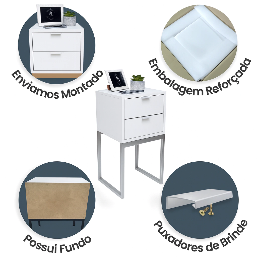 Se você está procurando uma mesa de cabeceira compacta, funcional, com design moderno e industrial, acabou de encontrar. Este modelo é ideal para quem tem pouco espaço, mas não abre mão do estilo.