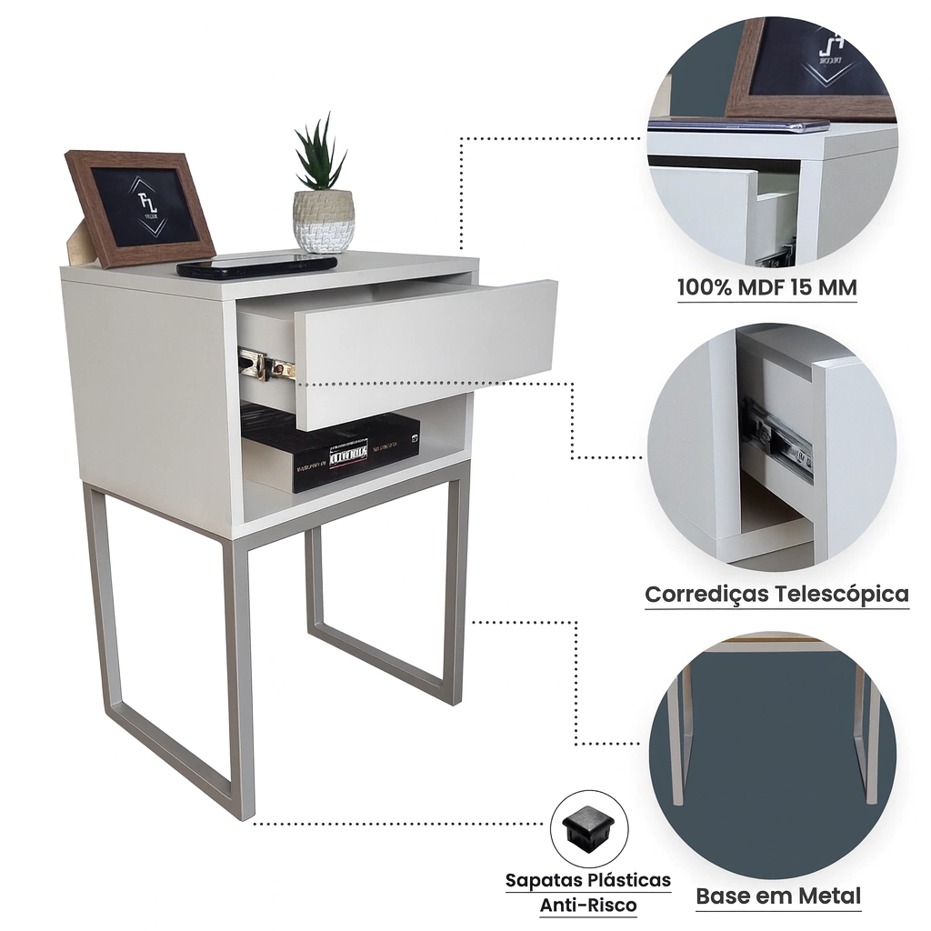 MESA DE CABECEIRA Off White 40CM – MODERNA, COMPACTA E PRONTA PARA USAR