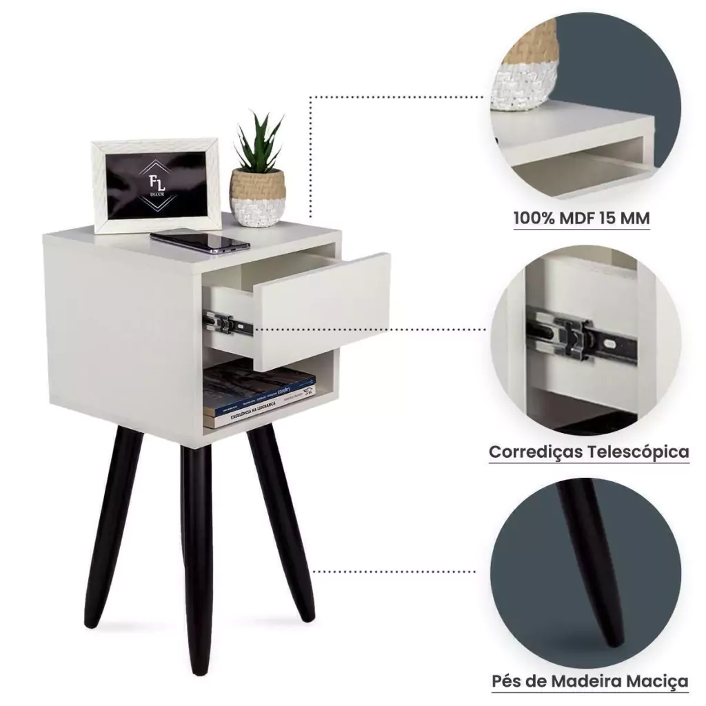 Esta mesa não é apenas para cabeceira! Use-a como mesa lateral na sala de estar, estante para seus livros favoritos ou em qualquer lugar que precise de um toque de classe retro.