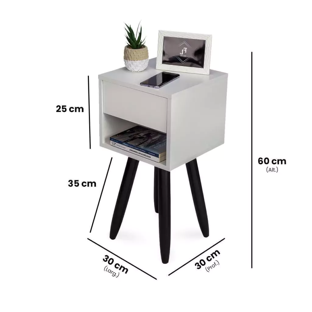 -Enviamos Montado. -Resistente Suportanto até 30kg -Construída com materiais duráveis e de alta qualidade. -Design moderno e minimalista que se adapta a qualquer decoração. -Gaveta com espaço de armazenamento para manter seu quarto organizado.