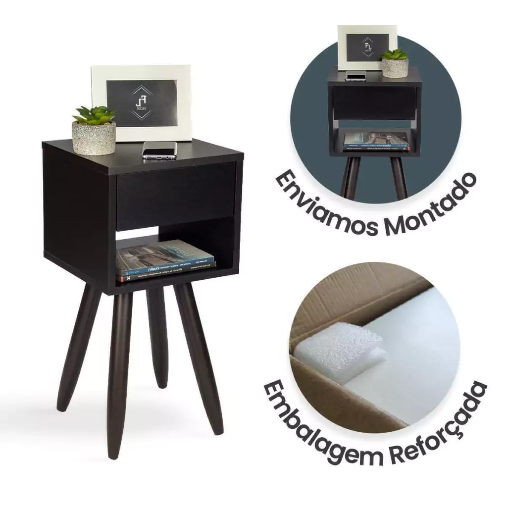 Esta mesa não é apenas para cabeceira! Use-a como mesa lateral na sala de estar, estante para seus livros favoritos ou em qualquer lugar que precise de um toque de classe retro.