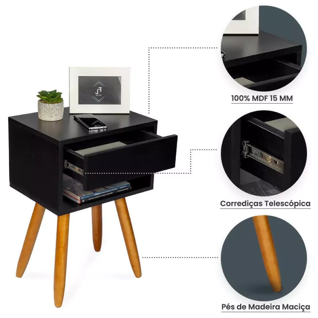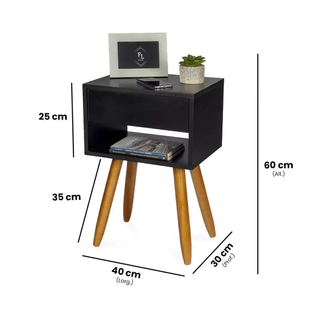 Esta mesa não é apenas para cabeceira! Use-a como mesa lateral na sala de estar, estante para seus livros favoritos ou em qualquer lugar que precise de um toque de classe retro.